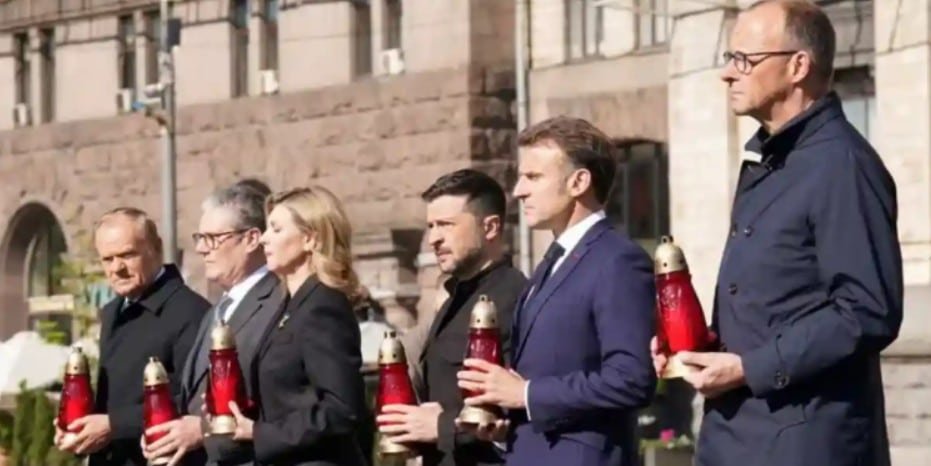 El nuevo canciller alemán, Friedrich Merz, arribó a Kiev en compañía del presidente francés, Emmanuel Macron, y del primer ministro británico, Keir Starmer tras un viaje, realizado en tren, que también incluyó al primer ministro polaco, Donald Tusk.