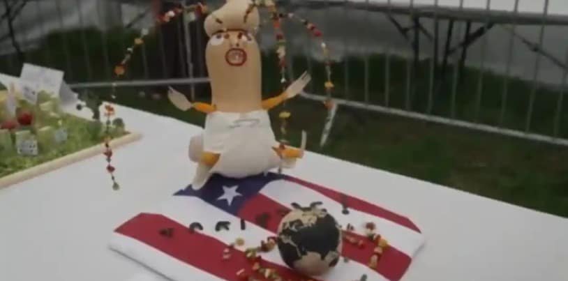 En la misma línea, Donald Trump fue retratado con una expresión rígida en un cuerpo tallado en calabaza tipo butternut, mientras que Dolly Parton reapareció como “Cauli Parton”, en alusión a la película 9 to 5, acompañada por el personaje Mr. Hart, ambos construidos con hortalizas.